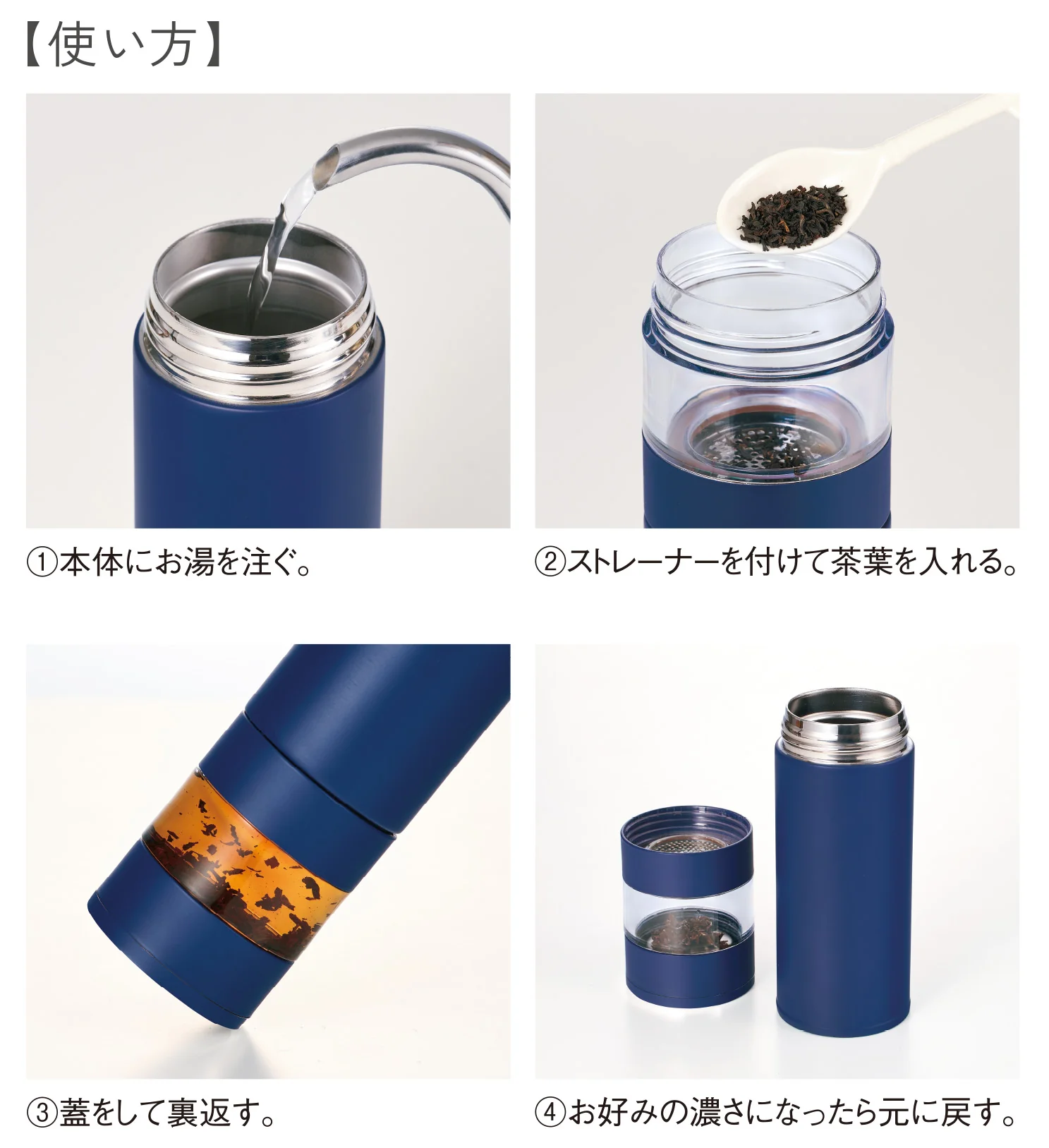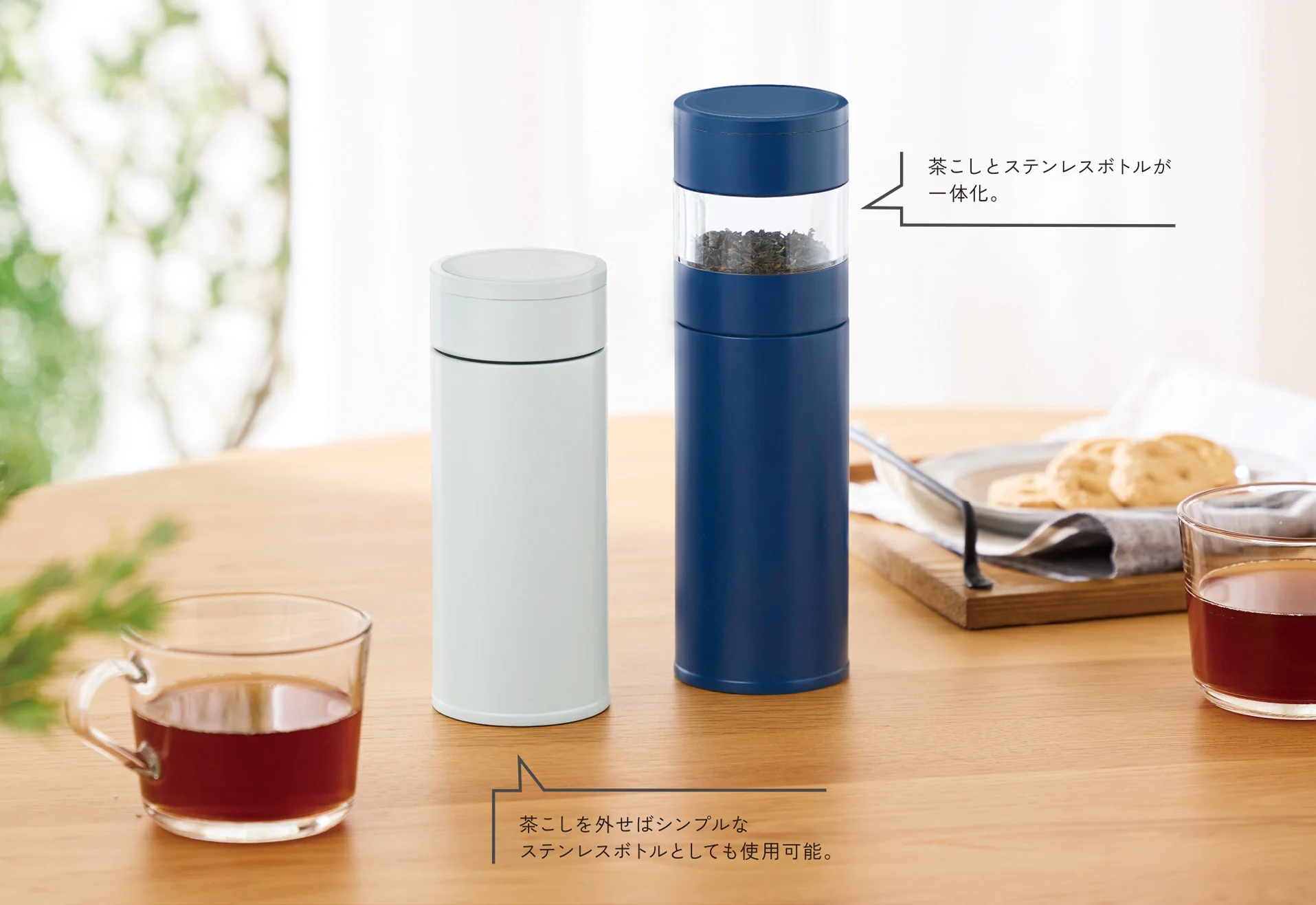ティーポットなしでお茶が楽しめる真空二重構造ステンレスボトル
