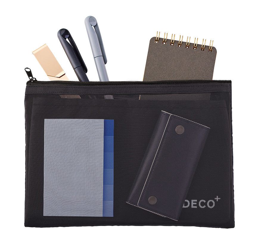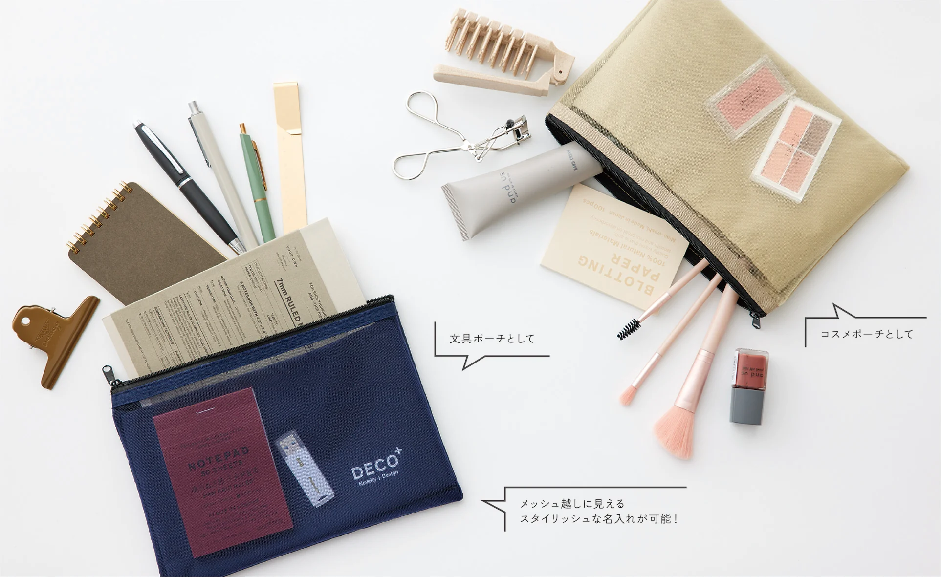 見せたい物と隠したい物を分けて収納可能なセパレートタイプのメッシュポーチ