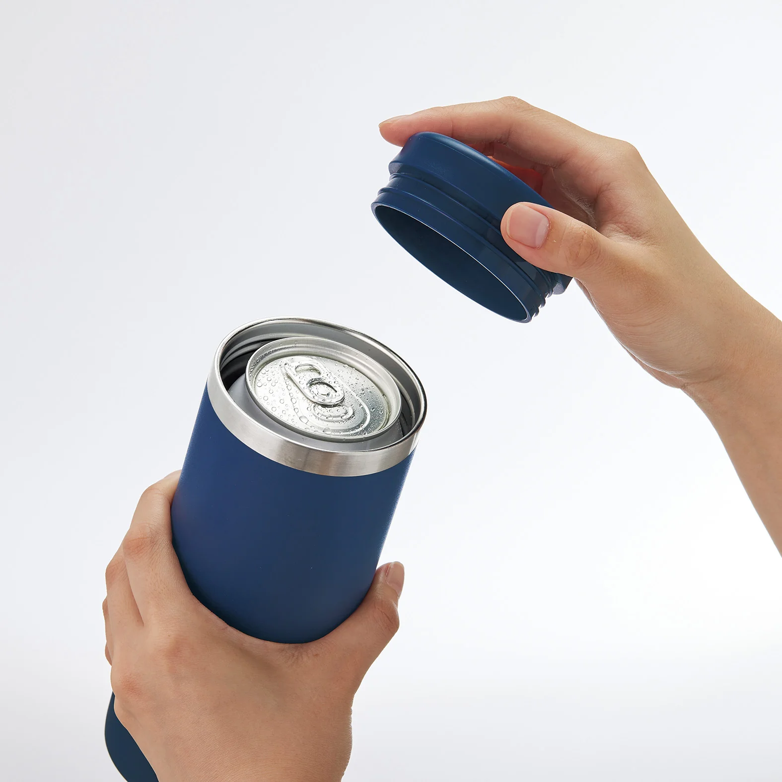 500mlの缶を冷たいまま持ち運べ、付属のラバーキャップでペットボトルをしっかり固定できる真空二重構造ステンレスタンブラーです。