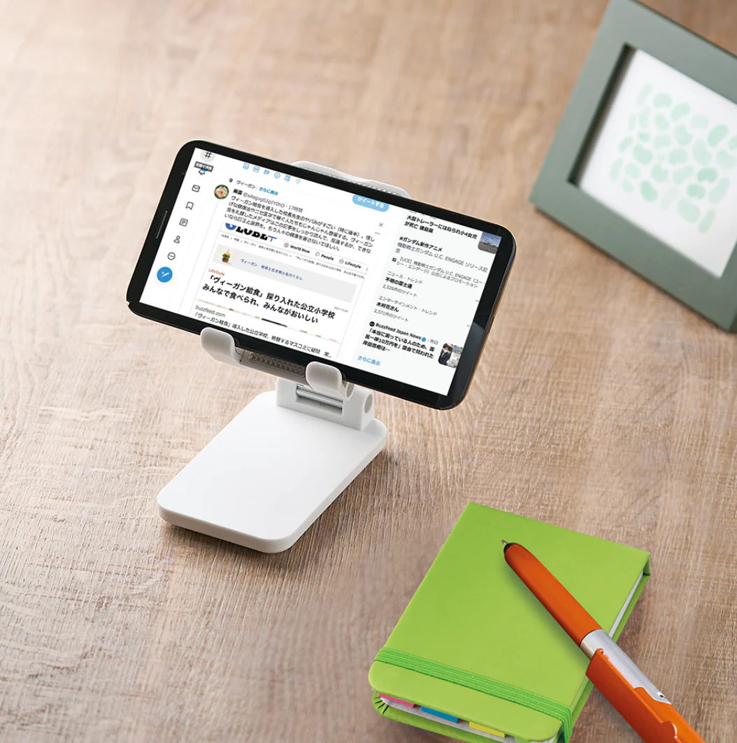 ベストなポジションで動画視聴を。角度&高さ調整でき、すべり止めで安定性もあります。