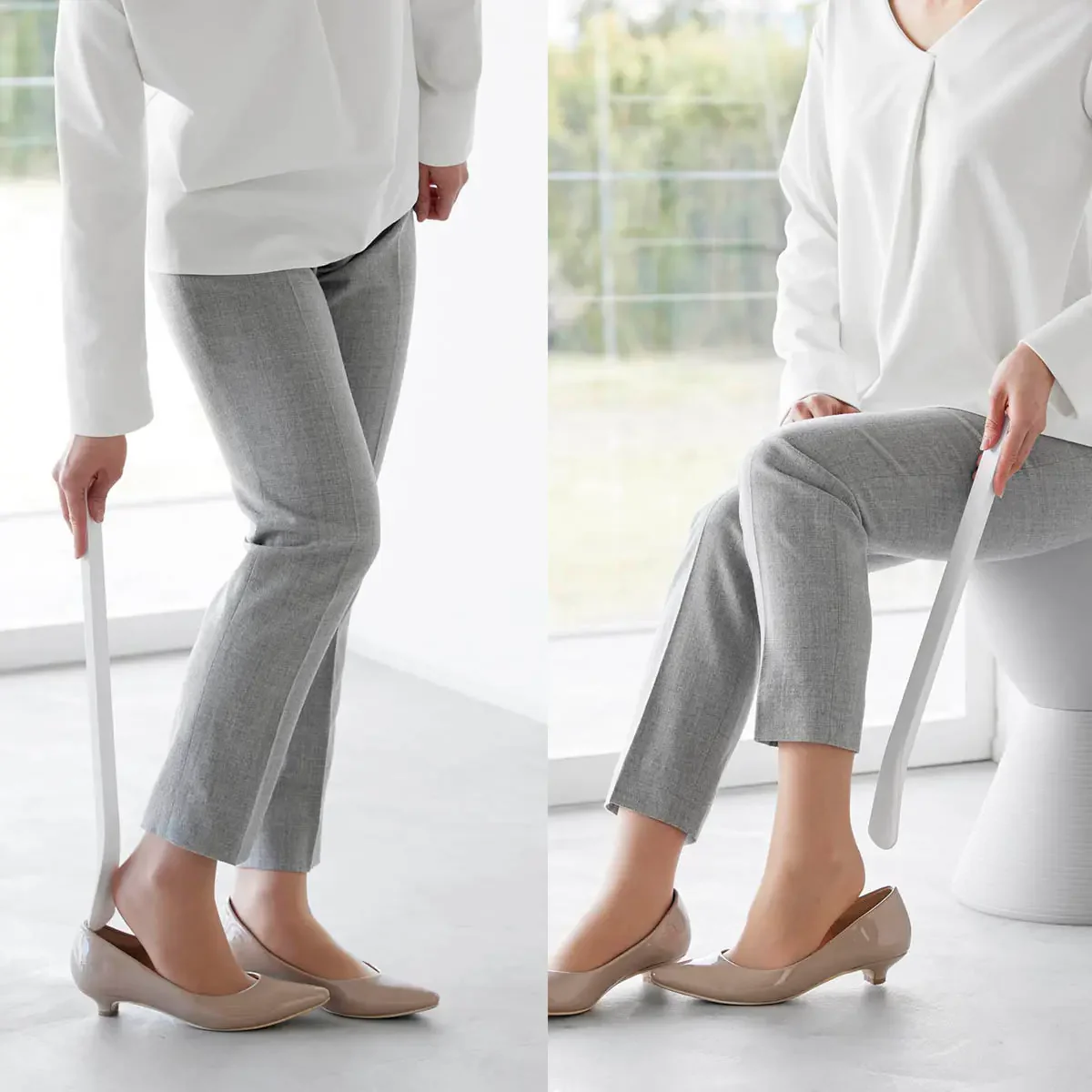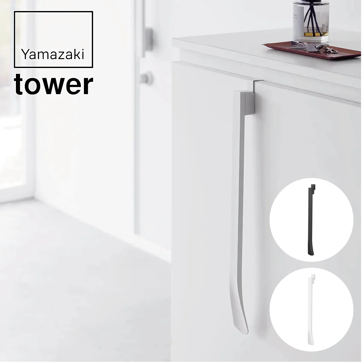 使用する際の脱着も簡単で、パッと手に取りサッと収納できて便利。椅子に座っても、立ったままでも使いやすい長さです。扉用フックの内側は下駄箱扉に傷をつけにくいクッション付き。