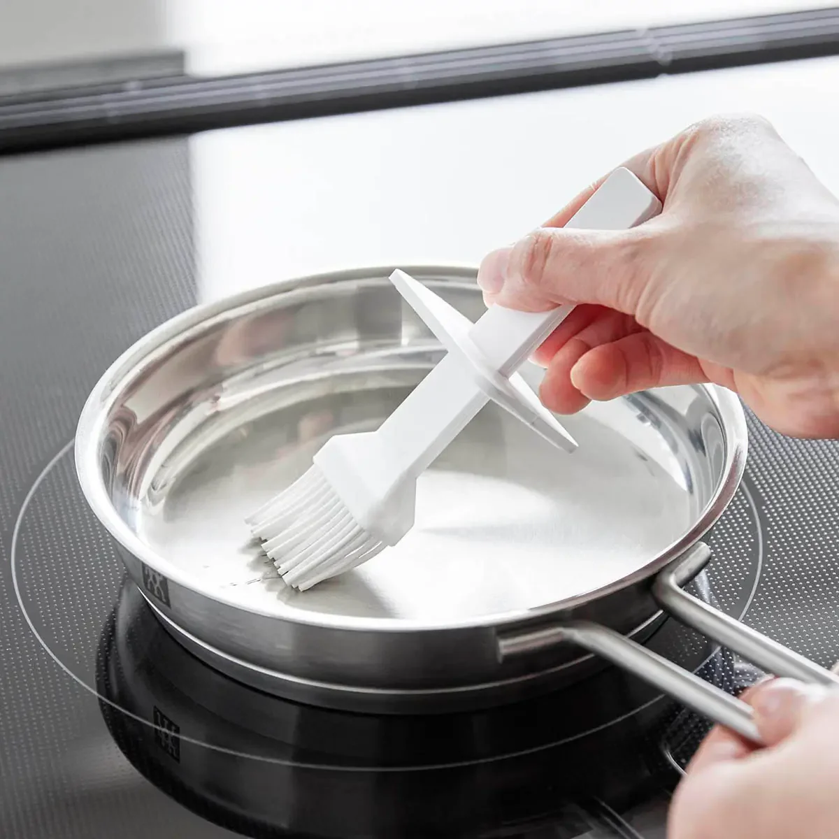 シリコーン製のブラシは少ない油で薄く塗り広げられます。容器の口が広く油が注ぎやすい形状。ブラシは食洗機で洗えてお手入れが簡単です。