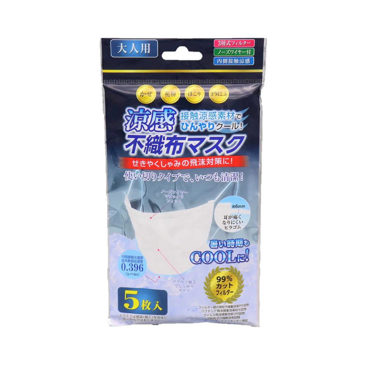 涼感不織布マスク 大人用 5枚入り