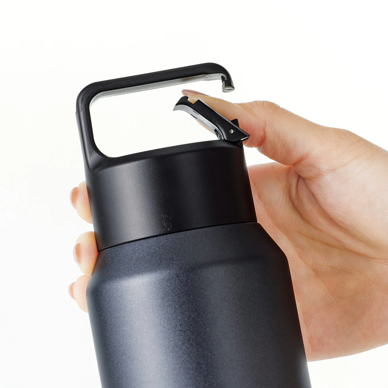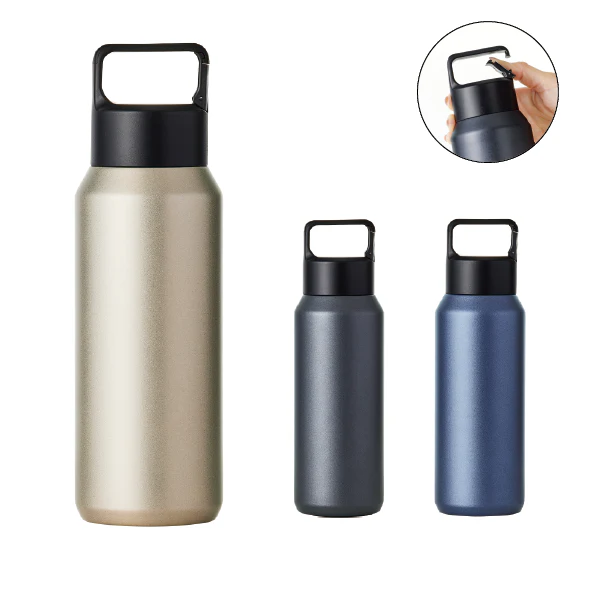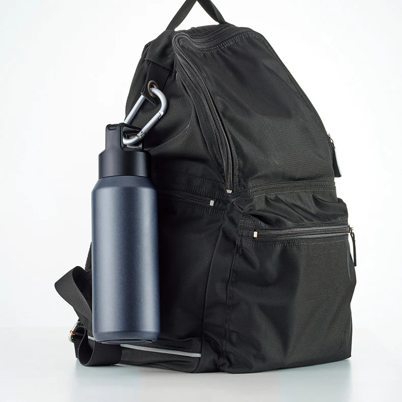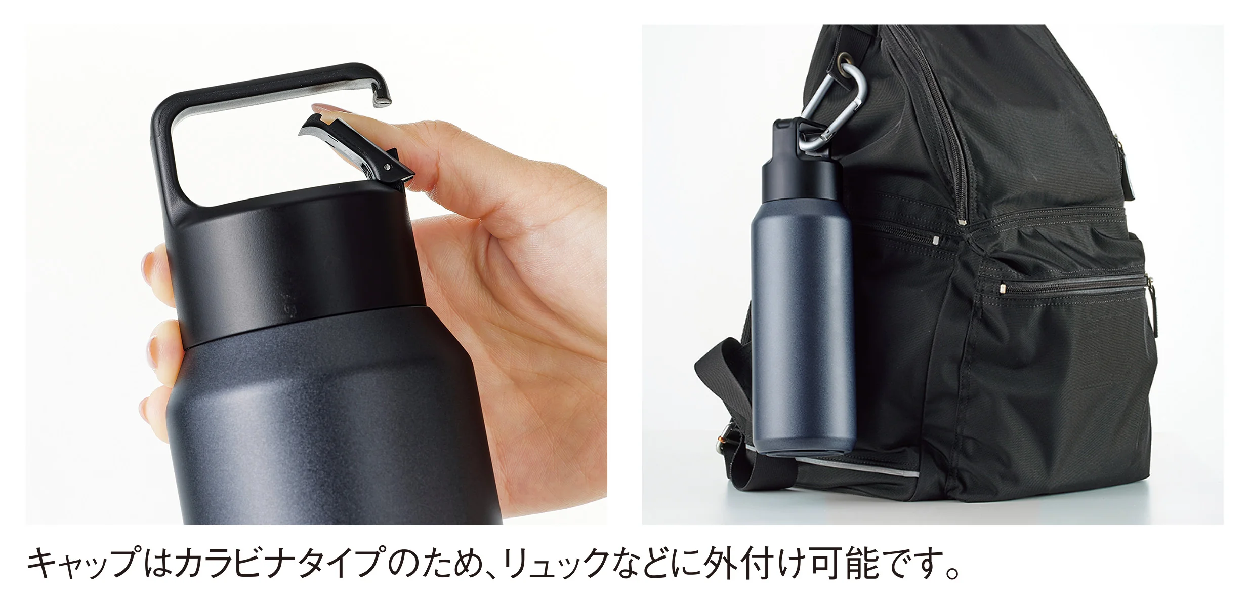 ガス抜き構造で炭酸対応の真空二重構造ステンレスボトルです。キャップはカラビナタイプの為、リュックなどに外付け可能です。